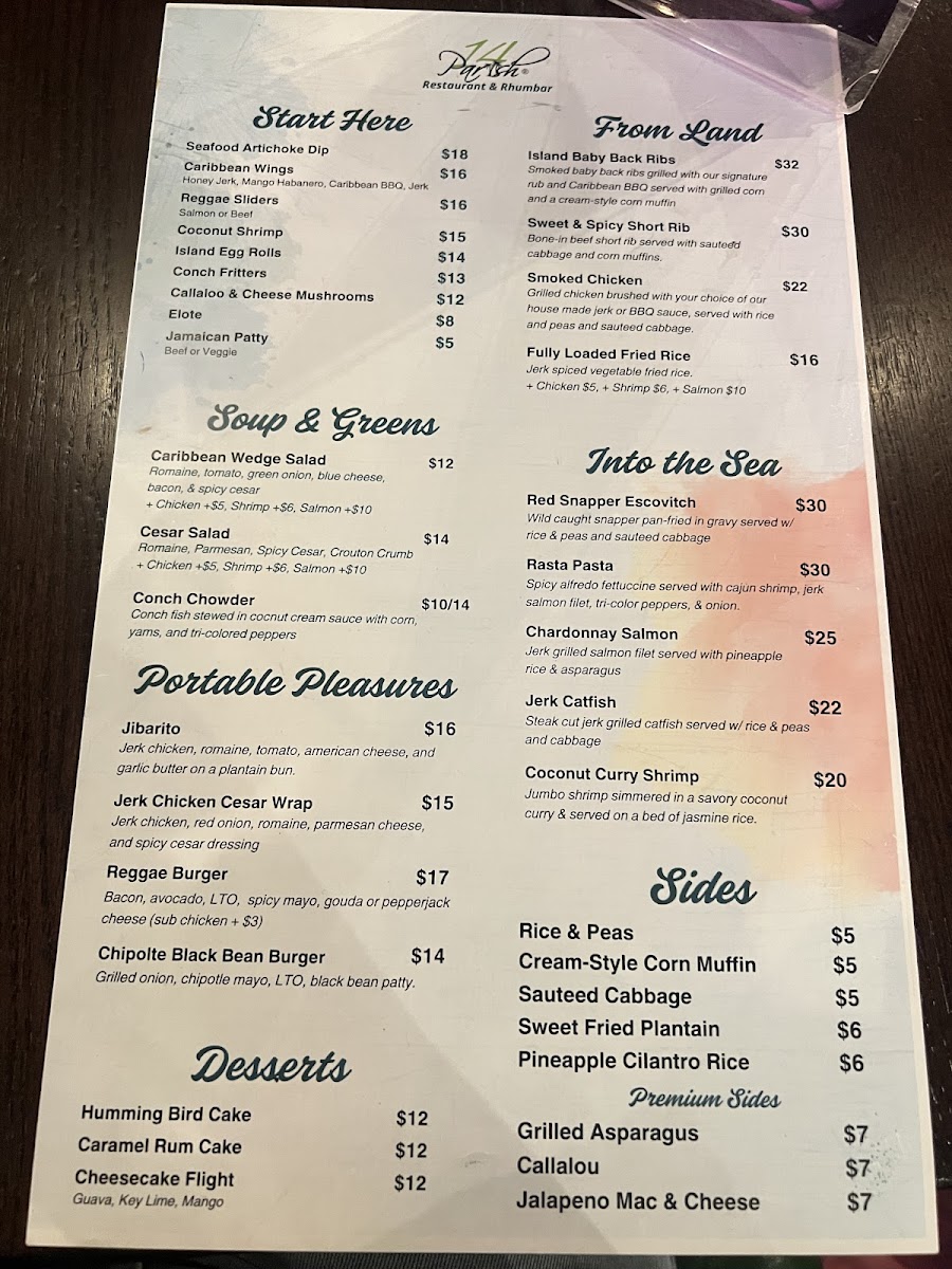 14 Parish is celebrated for its deftly crafted Caribbean dishes. Start your feast with their Cajun Caesar Salad or dive into the Caribbean Wedge Salad, both of which are vibrant and flavorful. For a heartier meal, don’t miss the Jibarito, a delicious fusion of Puerto Rican and Caribbean flavors served on a crispy plantain. The Reggae Burger is another standout, juicy and filled with spices that will dance on your palate.